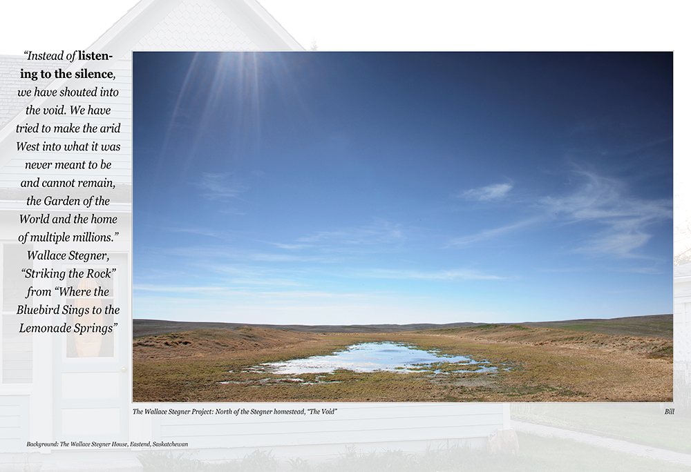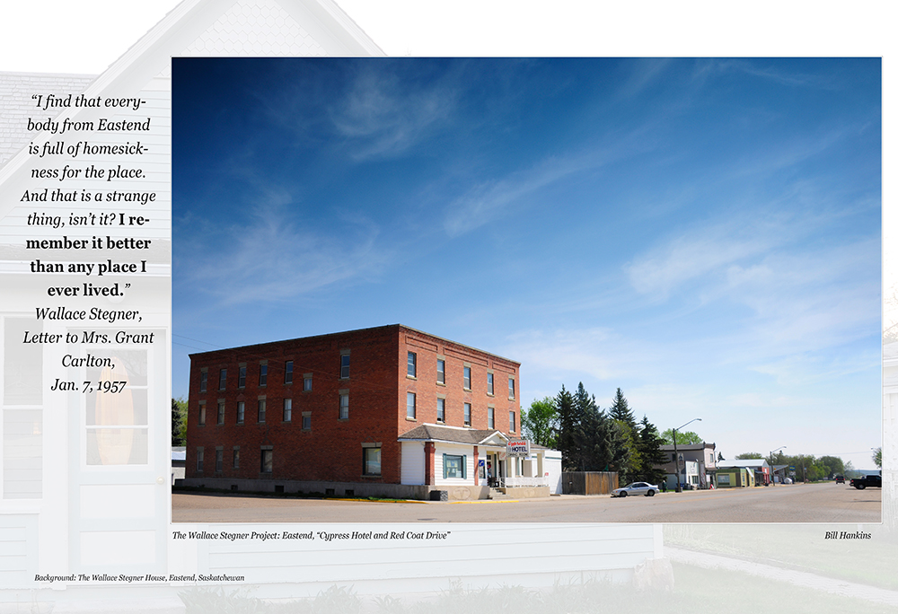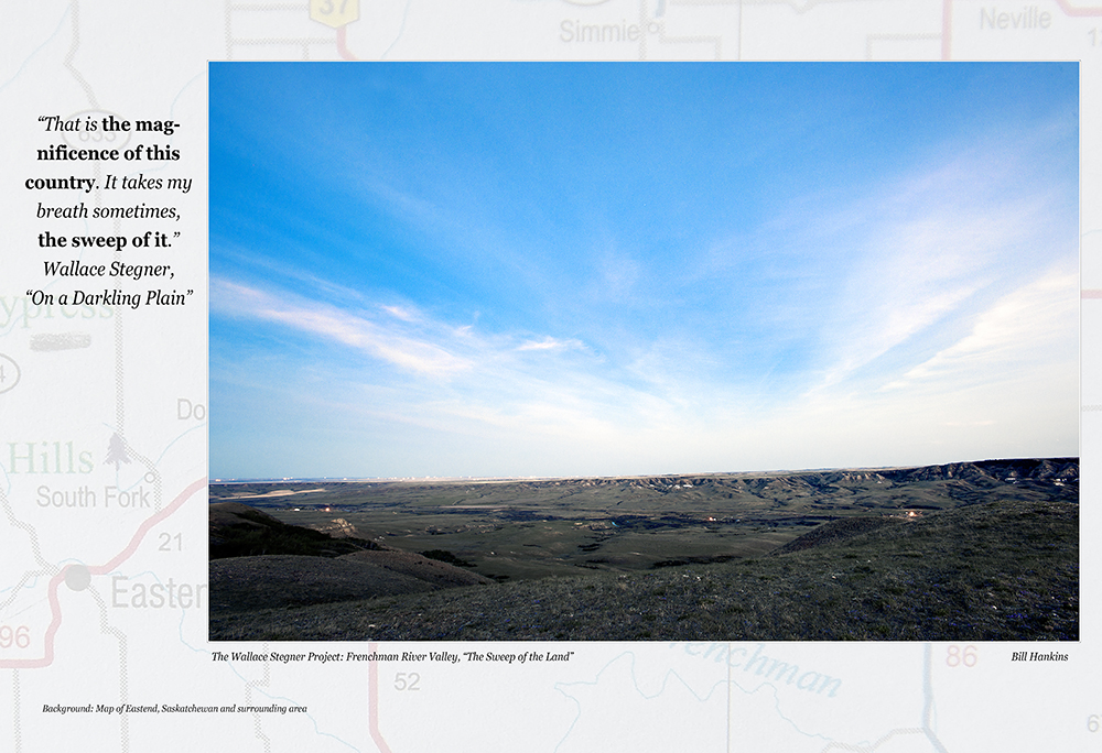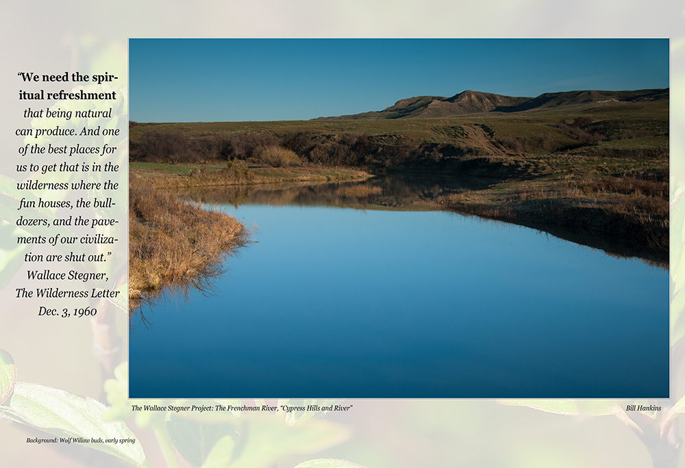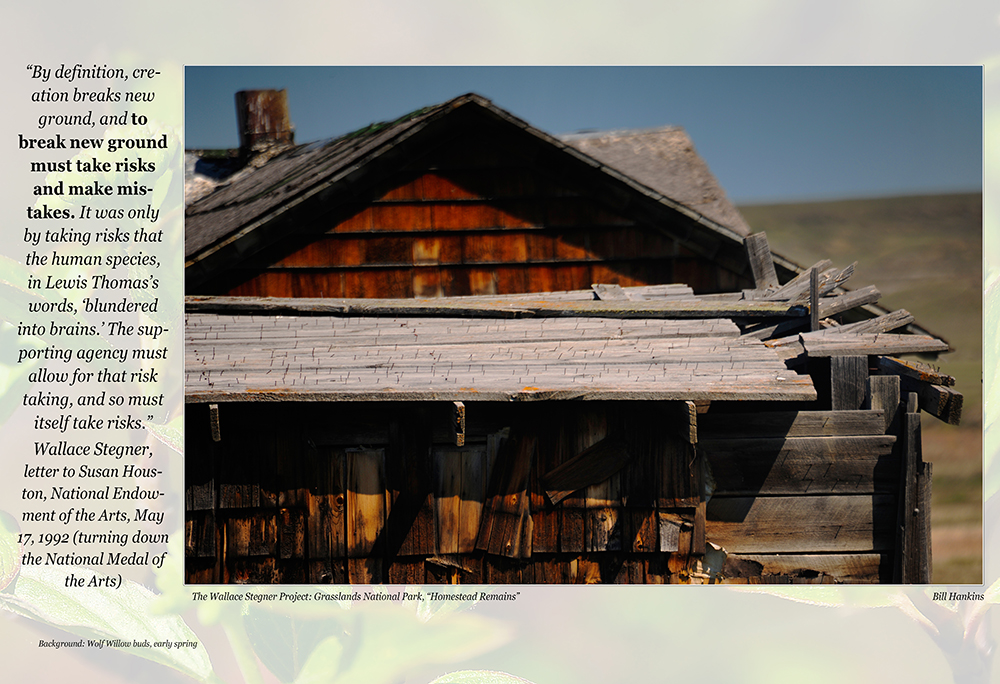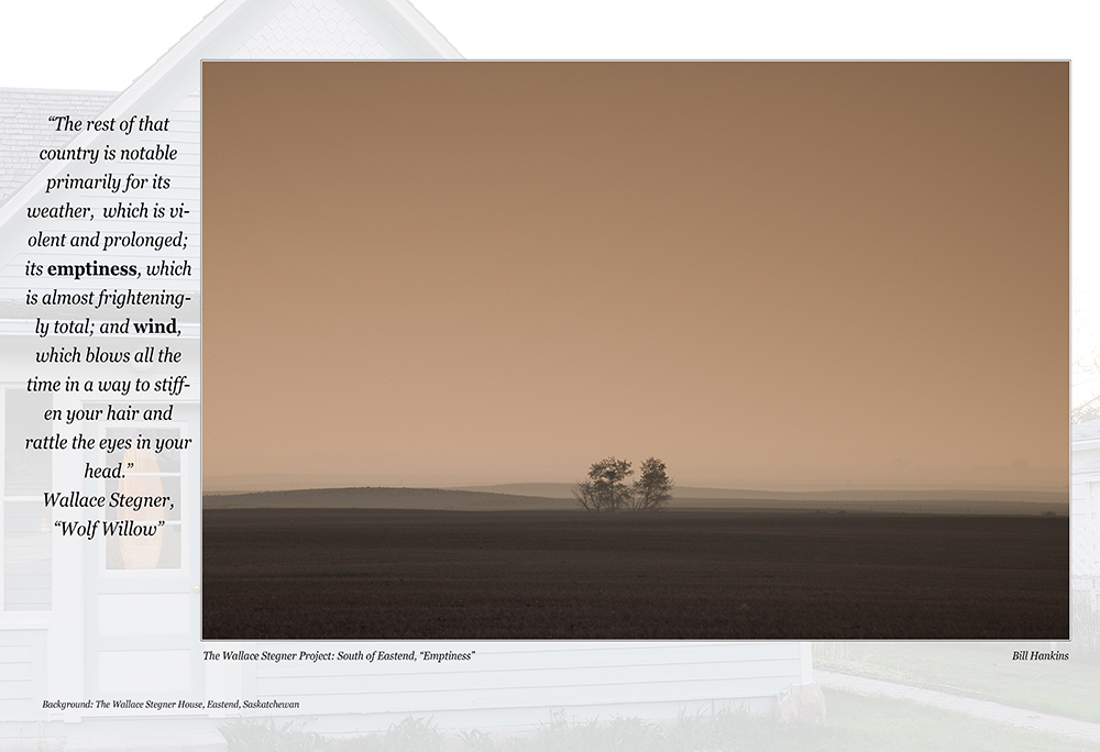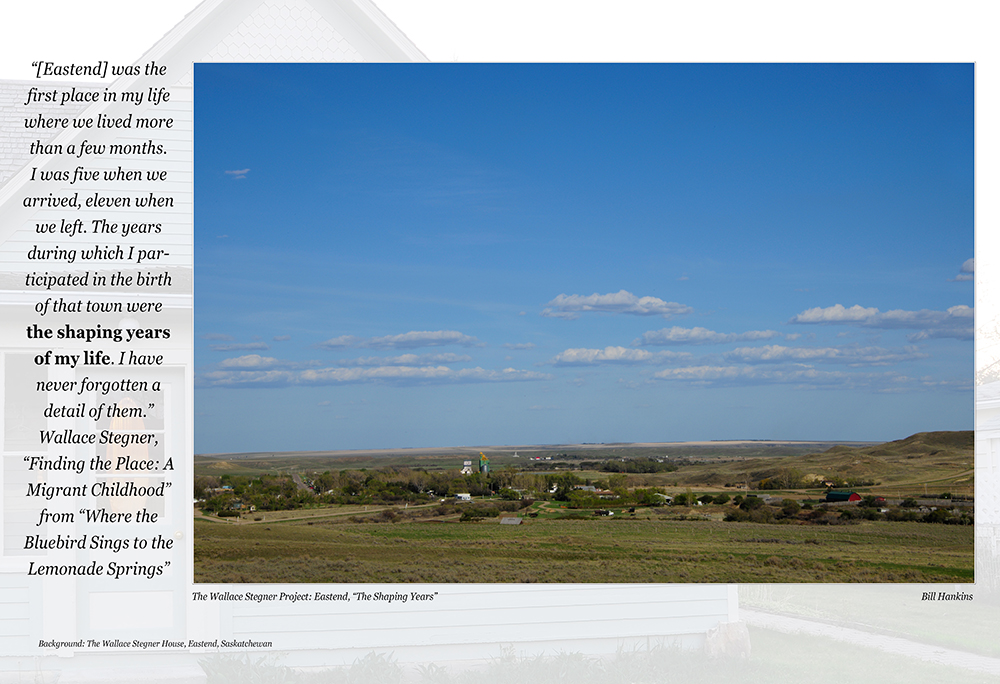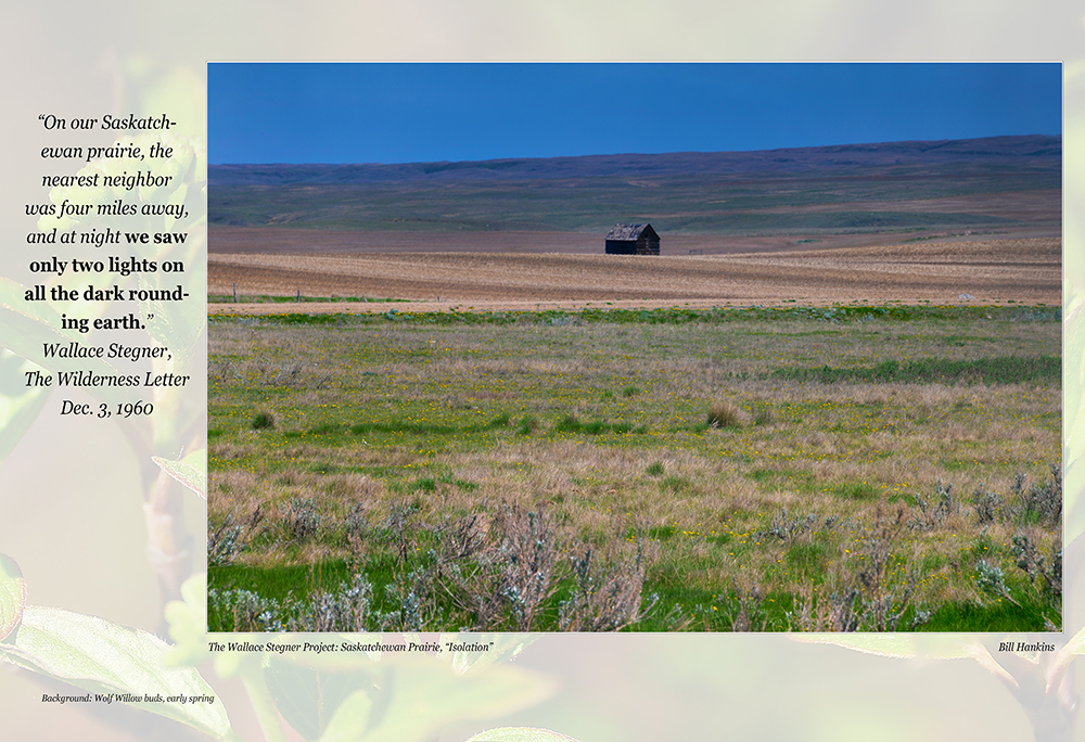 So, when I discovered The Wallace Stegner House in Eastend, Saskatchewan (his boyhood home, now an artists retreat), I set myself a goal of spending time in the landscape of Stegner’s youth, the place that imprinted on his soul what became his reality of how Man should relate to his world. The southwest prairie of Saskatchewan, where the Stegners homesteaded from 1914-1920, also wind-chiseled the writer and teacher and human being Stegner was to become, but in so doing it revealed the Artist as a Conservationist. One result was “The Wilderness Letter” that Stegner wrote in 1960, the capstone of the Wilderness archway that Thoreau began building over 100 years prior.